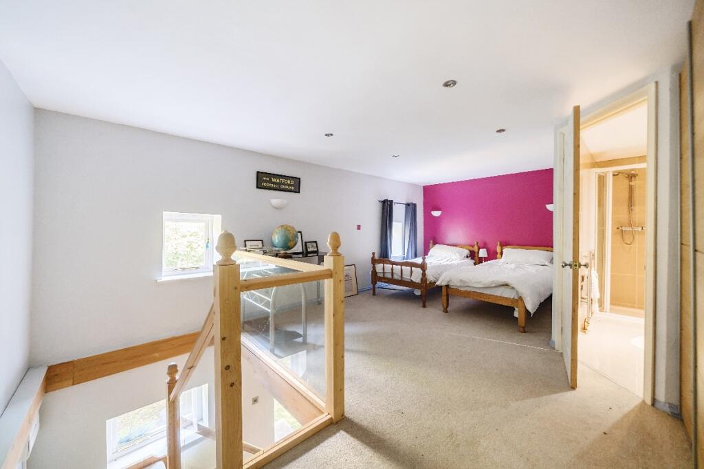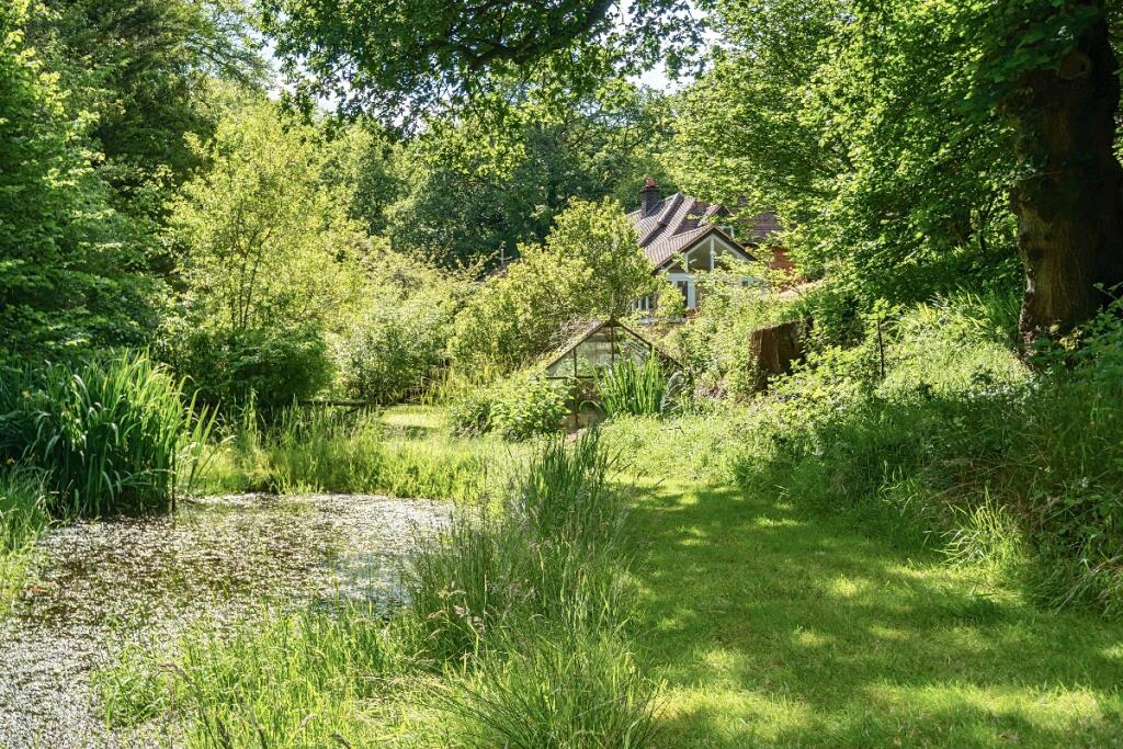 Stream Farm is a 4 bedroom, 2 bathroom property situated in Hindhead, East Hampshire. The property benefits from a large plot size of 3,912 sqft. It is located relatively close to several highly-rated schools and train stations. Based on the provided images, the property appears to be a traditional property that has undergone some modernisation. It is in good condition, with well-maintained interior and exterior spaces. The property includes a large garden and what appears to be a pond, adding to its appeal. The property also benefits from a conservatory and stables. Considering the average house price in the area and the average price per sqft, the list price of £1,600,000 for this 5,730 sqft property seems high. However, the unique features of the property, including its size, land, and location, could justify the higher price point compared to other properties in the area. Further analysis of comparable properties in the immediate vicinity would be needed to definitively assess the value for money.