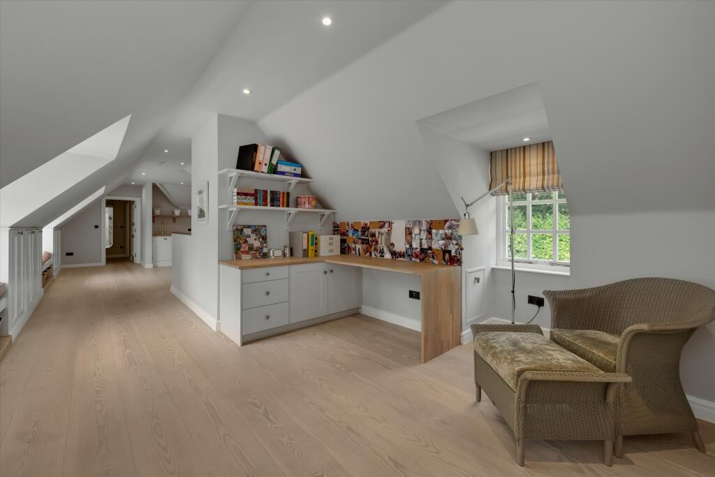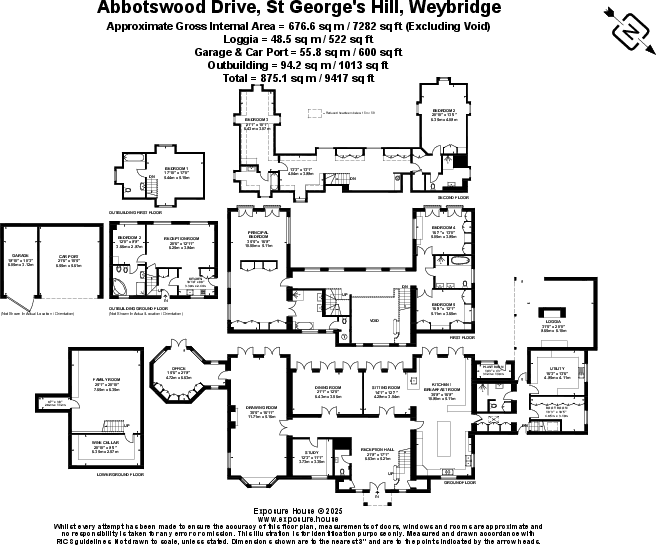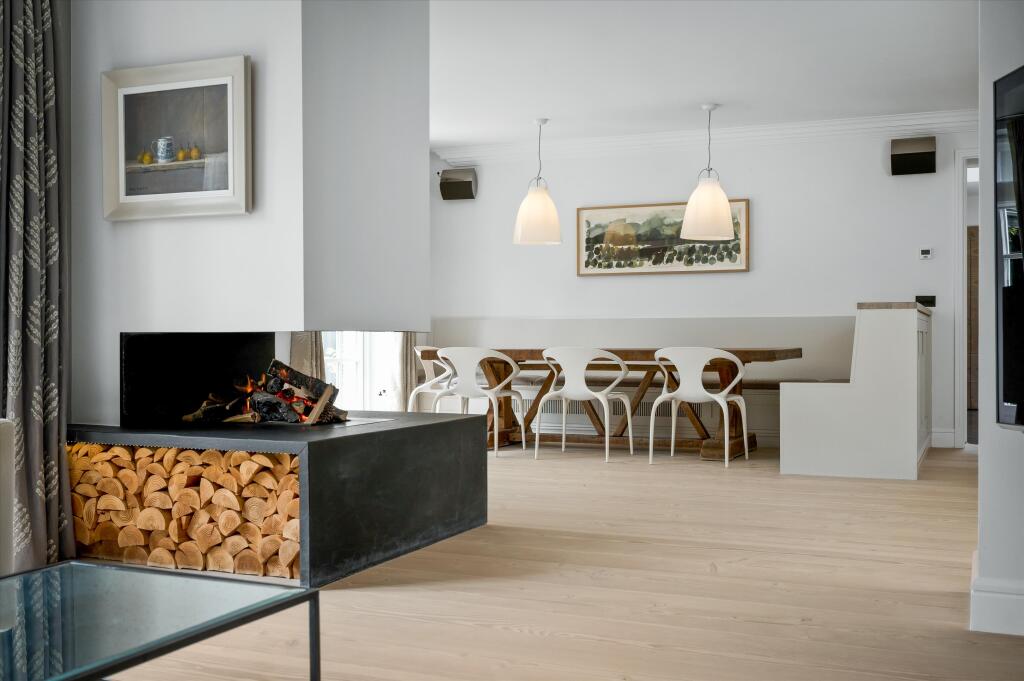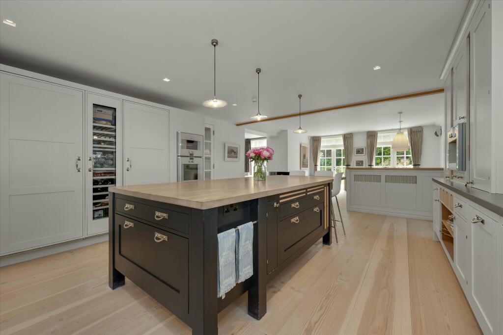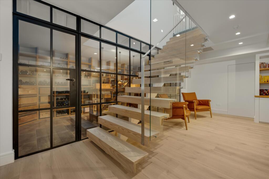 A substantial detached property located on Abbotswood Drive, St George’s Hill, Weybridge, Surrey. The house boasts 6 bedrooms and 6 bathrooms, with a generous 7,282.86 sqft of living space. The property appears to be in excellent condition, with modern interiors and stylish finishes. The property also benefits from a basement and a well-manicured garden with a swimming pool and outdoor entertaining area.