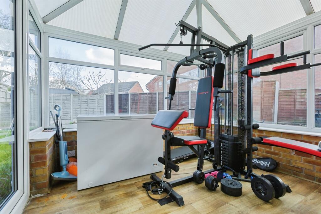Based on the provided images, the property appears to be in reasonable condition, though some minor cosmetic updates may be desirable to enhance its appeal. The garden is of a modest size, suitable for a family, and includes a shed and conservatory. The property also has a garage.