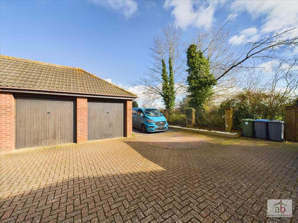 An extended and improved FOUR bedroom detached house with DOUBLE GARAGE located at the end of a cul de sac location. This property has been superbly kept throughout and offers many improvements included modern fitted kitchen and utility room, spacious lounge with wood burner plus two (cont.)