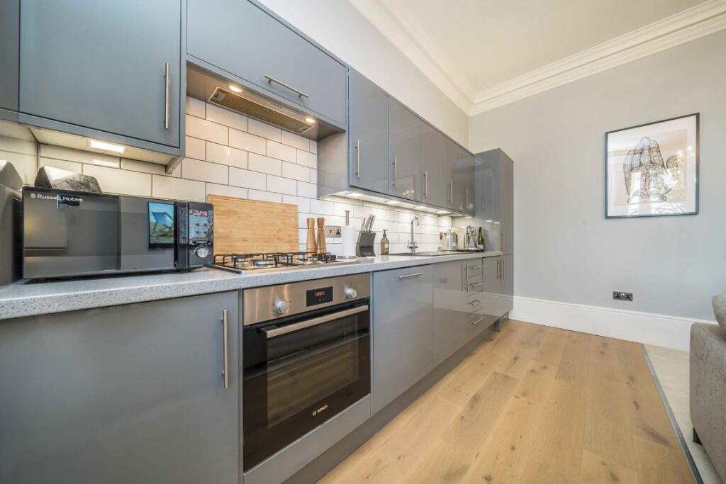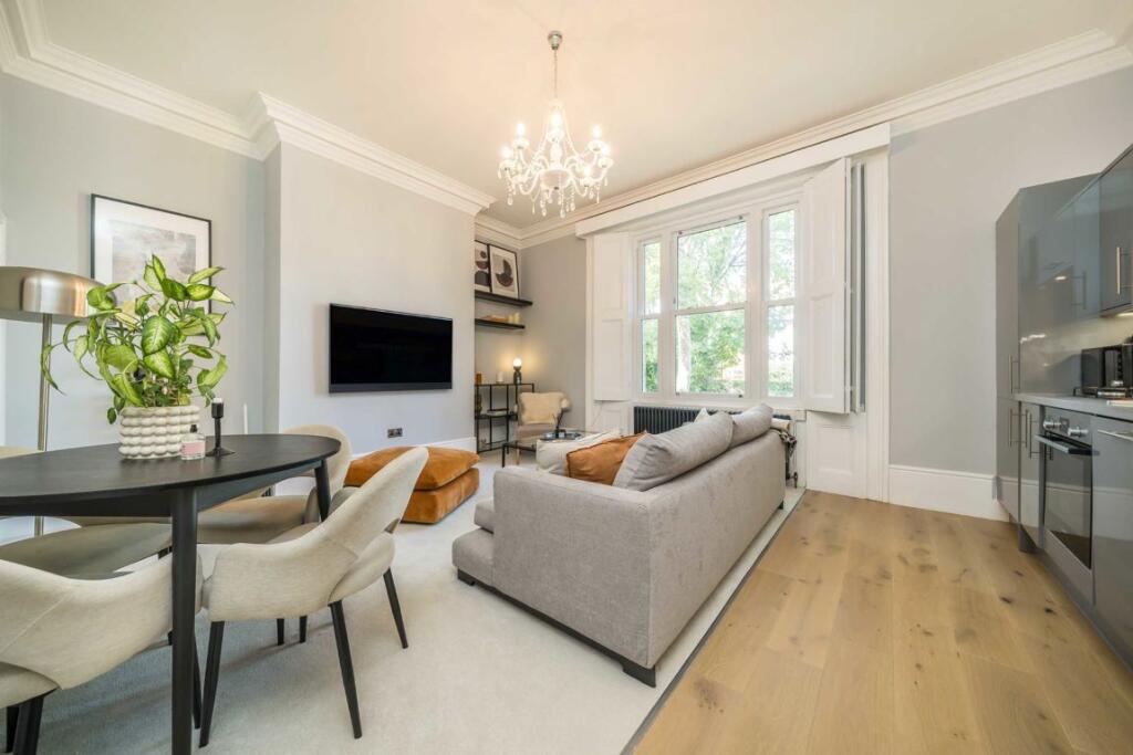 This characterful Victorian apartment is offered to the market with a share of the freehold and a short distance from the station. Accommodation includes an open plan kitchen/reception room, two bedrooms, ample storage, bathroom and a communal garden.