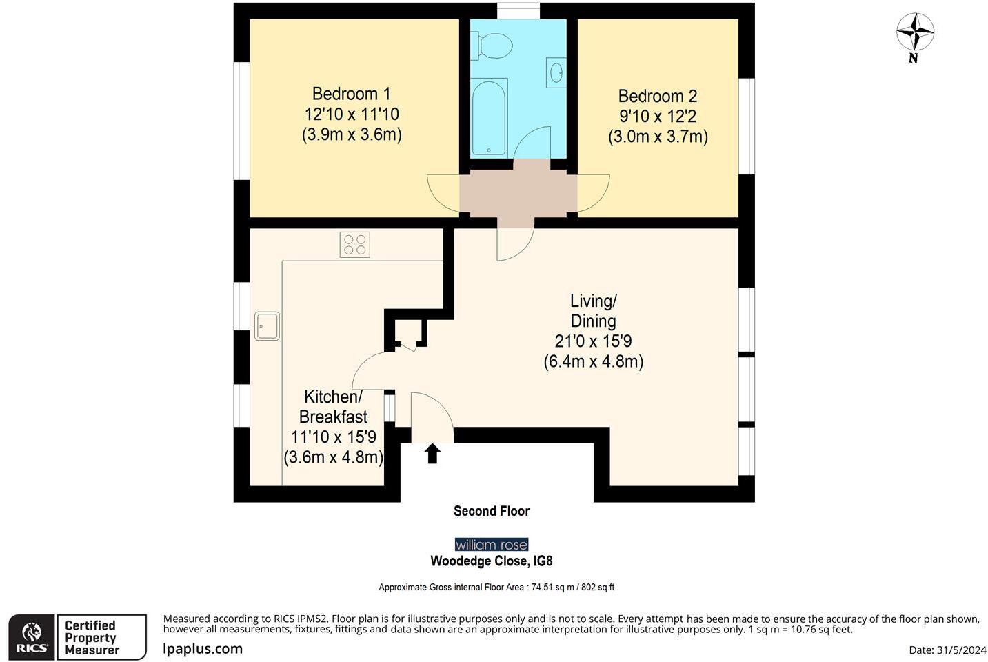 This property is a 2-bedroom apartment located in North Chingford, London. The apartment is situated on Woodedge Close, a residential street with nearby access to green spaces and a cricket pitch, as shown in the provided aerial photograph. The property benefits from being relatively close to several schools, including Heathcote School & Science College and Whitehall Primary School, both rated as “Good” by Ofsted. Chingford train station is also within walking distance, providing convenient access to London Overground services. The interior photos reveal a modern, well-maintained apartment with a recently updated kitchen and bathroom. The living areas are bright and spacious, and the property appears to be in good condition. However, one bedroom shows signs of clutter and disorganization, which may be easily rectified. While the plot size is listed as 0.00 sqft, the surrounding area offers green spaces and parks. The list price of £400,000 is lower than the average price of similar properties in the area (£577,317), and considering the property’s condition and location, it could be considered good value for money. The average price per sqft in the area is £545, and this property is £802 sqft, making the price per sqft approximately £498. This is significantly below average, suggesting the property is potentially underpriced.