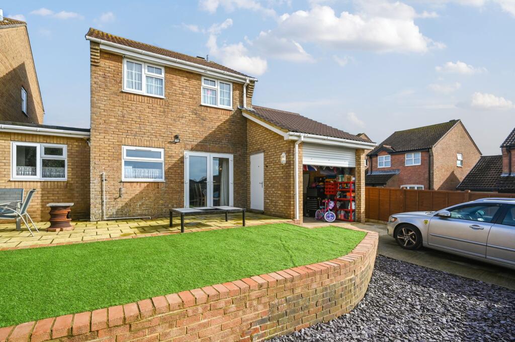 Modern 4-bed link-detached home with versatile living spaces, 2 bath/shower rooms, south-facing garden & spacious custom-built garage. Close to amenities & schools, with excellent transport links.