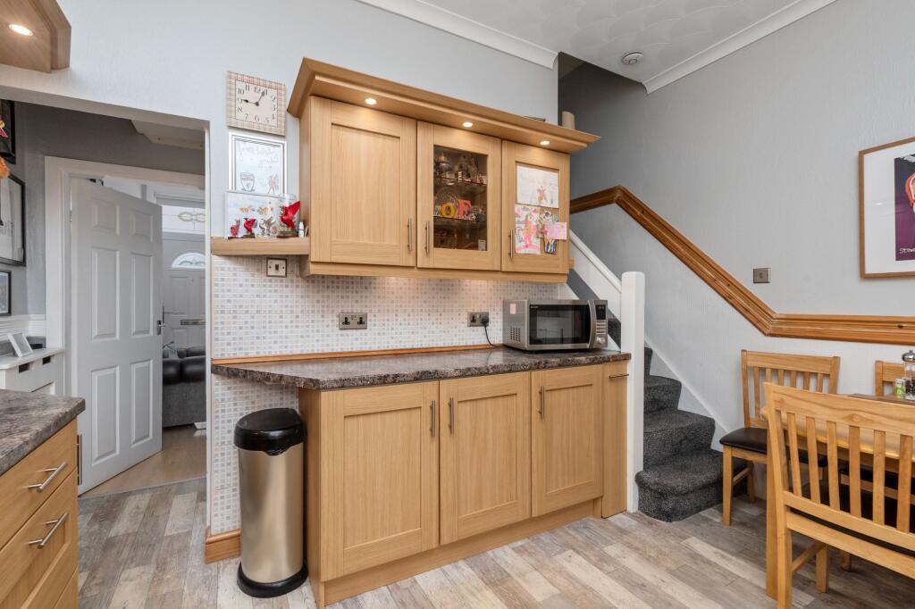 This two-bedroom terraced house in Thatto Heath, St Helens, is listed at £125,000. The property benefits from a small, manageable rear yard. The interior is presented in good order, with a modern kitchen and bathroom. The location is convenient, with nearby primary schools and train stations. However, the average house price in the area is significantly higher, suggesting this property may be underpriced, though further investigation into the specifics of comparable properties would be needed to confirm this.