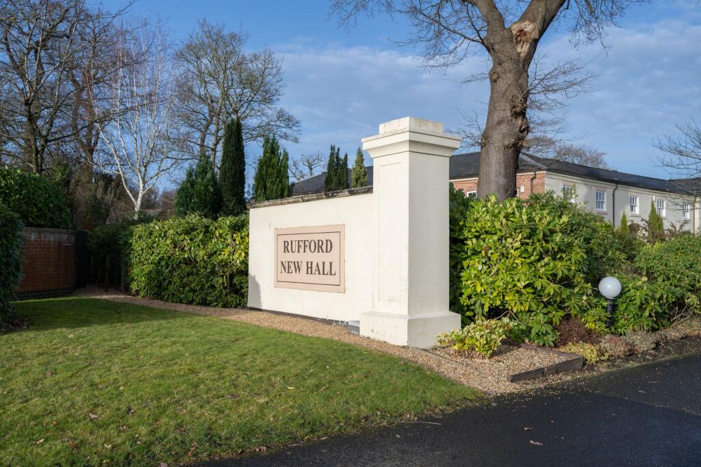 Three-bed mews in Rufford New Hall estate with flexible living, private garden, en suite, shared tennis court, mature grounds, and easy access to local amenities.