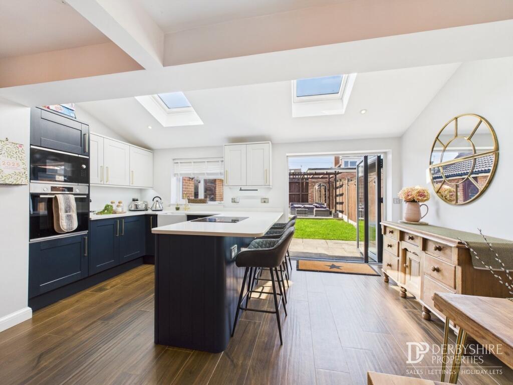 This property is a 3-bedroom semi-detached house located in Allestree, Derby. Allestree is a desirable suburb known for its good schools and family-friendly atmosphere. The property itself appears to be in excellent condition, having undergone a recent modernisation as evidenced by the high-quality kitchen and bathroom fixtures. The property benefits from a well-maintained garden, adding to its appeal. While the plot size is not specified, the garden appears to be of a reasonable size. The list price is slightly below the average price for the area, making it potentially good value for money, especially considering its condition and location. However, a direct comparison is difficult due to a lack of precise square footage data for comparable properties.
