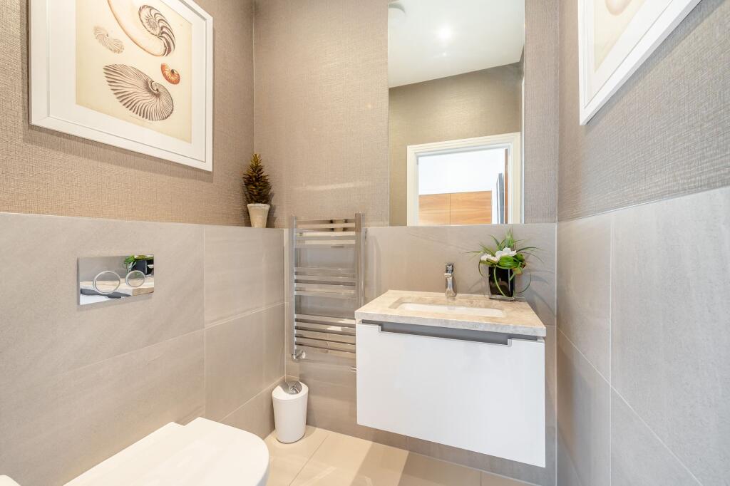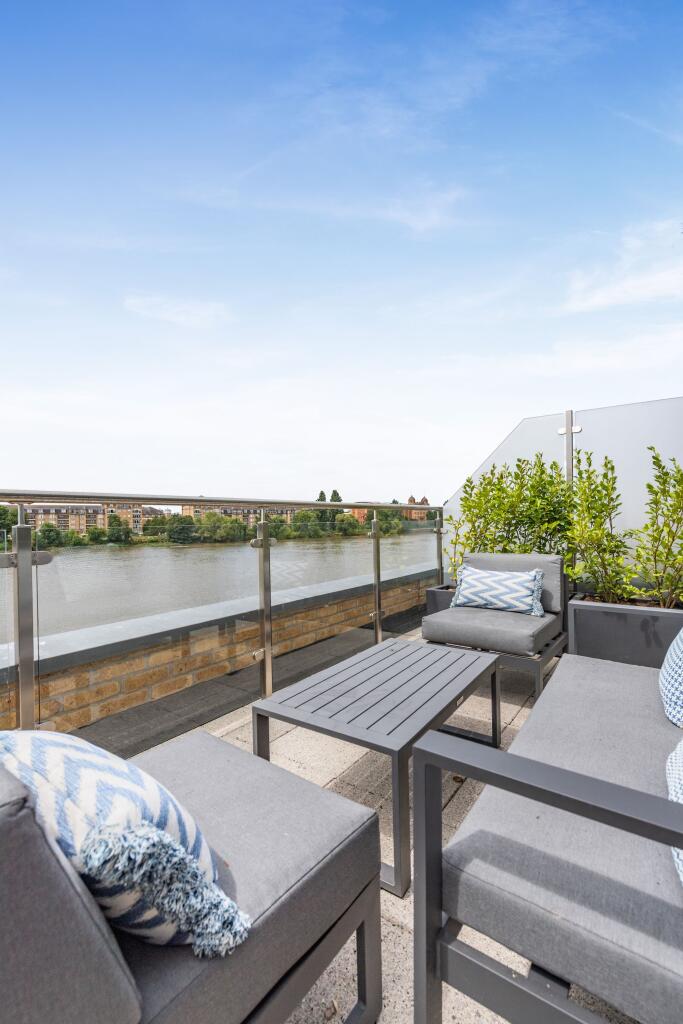 A south-west facing, new build townhouse with panoramic views from three spacious balconies overlooking the River Thames. The house is set within Palace Wharf, a gated development on the River Thames.