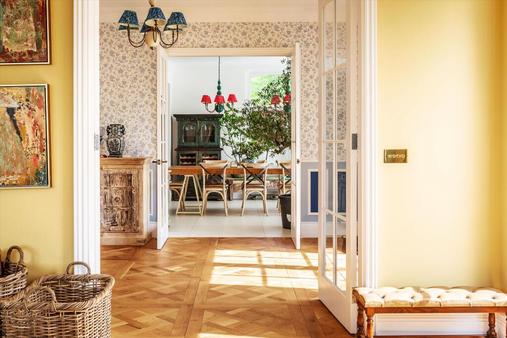 Enjoying a delightful setting in this sought-after location, a superb former Coach House that has been extended and refurbished to the highest standards throughout. - Newly refurbished throughout to the highest of standards. - Close to 4,000 sq ft. - Drawing room and sitting room. - Impressive h...