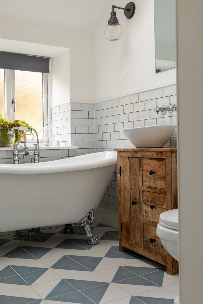 The property is a three-bedroom, three-bathroom terraced house located in Freshford, Somerset. Freshford benefits from a train station providing links to Bath and beyond, and is within reasonable proximity to several schools, including Freshford Church School. The property itself is 680.70 sqft with a 990 sqft plot. The images show a property that has undergone modernisation, blending traditional features with contemporary updates. The kitchen and bathrooms are modern and well-presented. The property appears to be in good condition, with no obvious signs of disrepair. The inclusion of a wood-burning stove adds a cosy and traditional feel. The presence of a small garden is evident from the exterior and garden shots. Considering the average price per sqft in the area is £537, and the list price of this property is £550,000, the price per sqft is approximately £806. This is significantly higher than the average for the area. However, the unique character of the property, its location in Freshford, and the apparent good condition may justify this premium. The smaller than average plot size may also be a factor in the higher price per sqft. Nearby comparable properties show a range of prices, suggesting that the market in Freshford is varied.