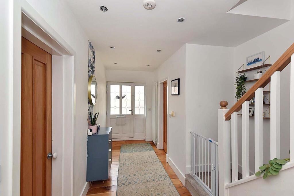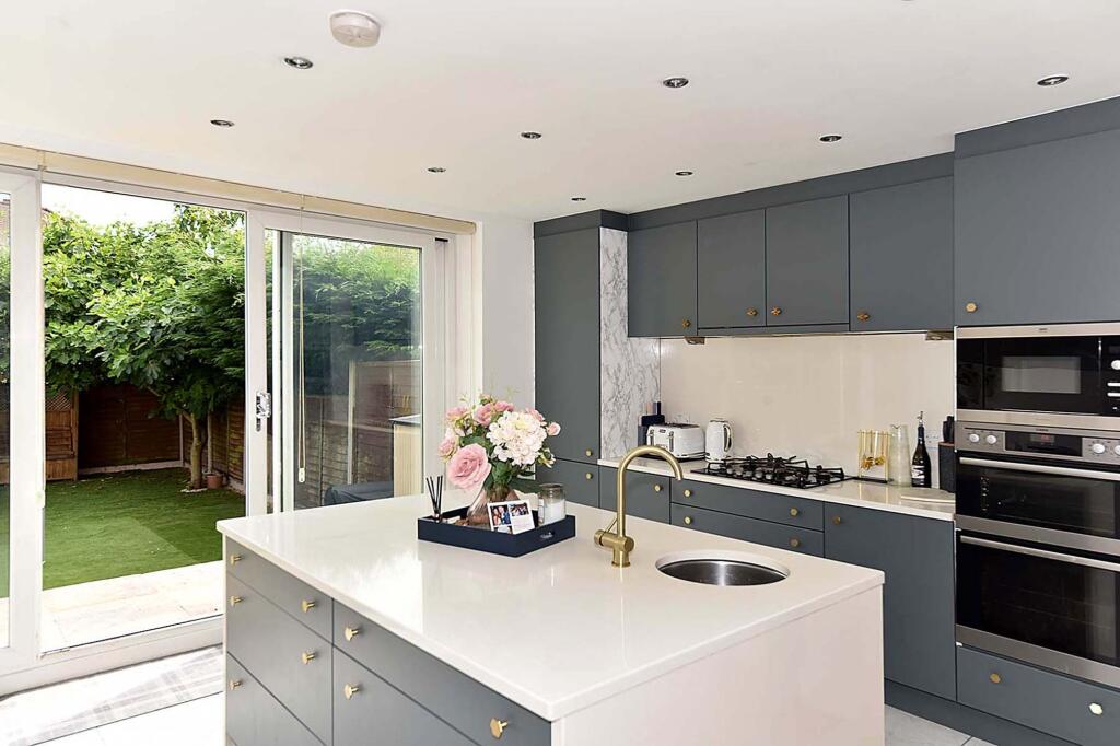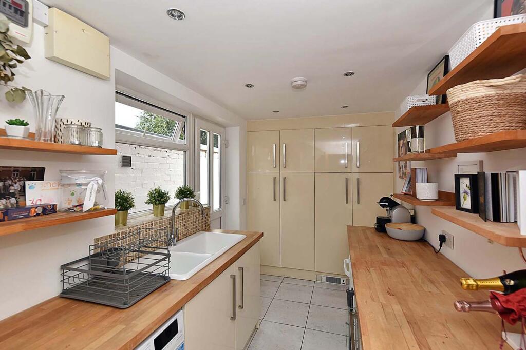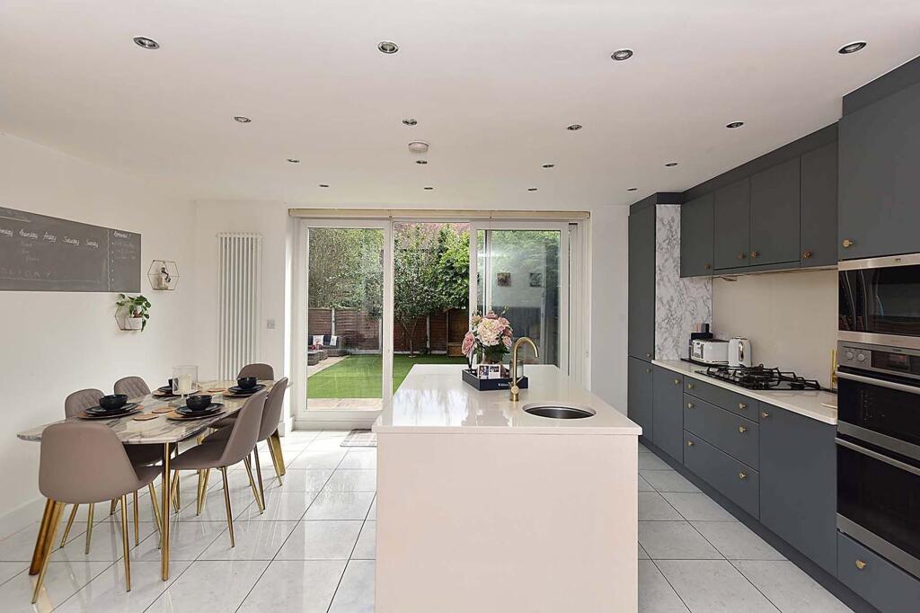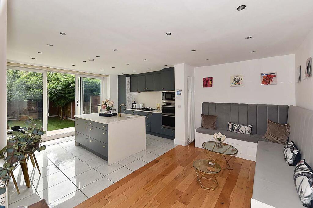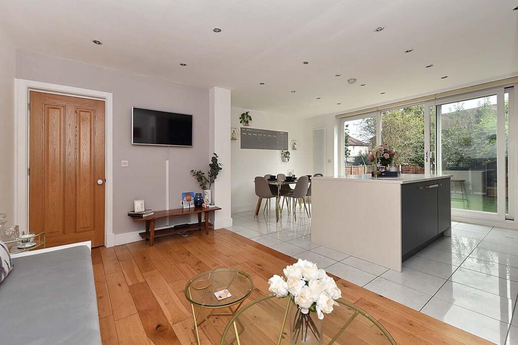 Extended and beautifully remodelled semi-detached home in a popular town section. High-quality finishes, spacious layout, impressive open-plan living space, utility room, principal bedroom with dressing area and en-suite, two bedrooms, family bathroom, driveway, landscaped garden.