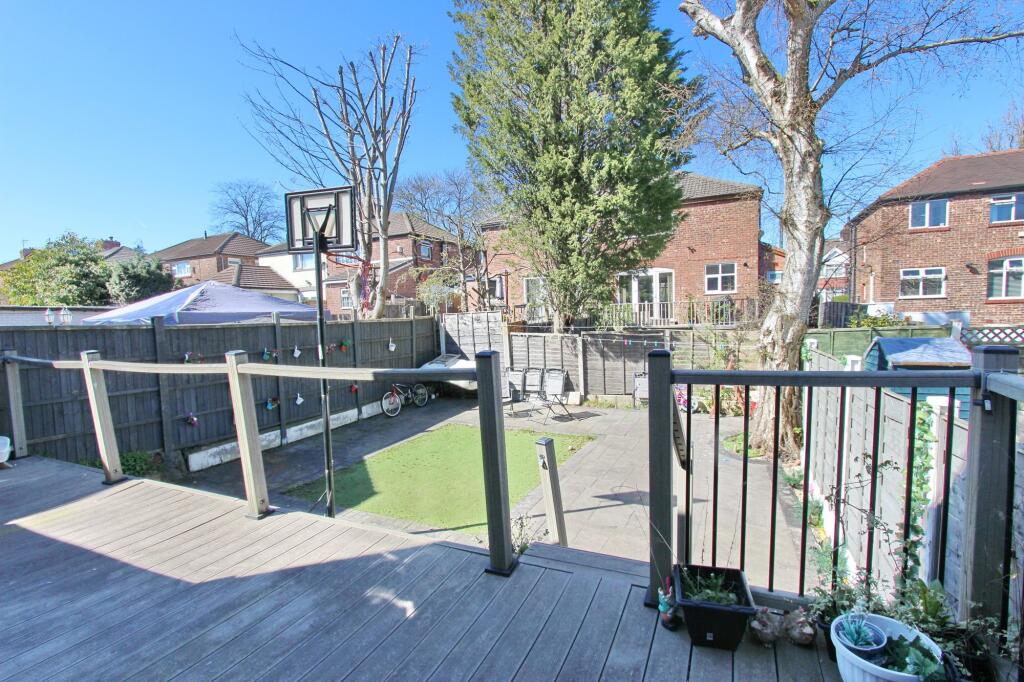 This property is located in Whitefield, Bury, Greater Manchester. The area benefits from nearby primary schools with good Ofsted ratings such as Heaton Park Primary School and Our Lady Of Grace RC Primary School. Several train stations are within reasonable commuting distance, including Clifton, Salford Crescent, and Manchester Victoria. The property itself is a three-bedroom semi-detached house. While the square footage is not provided, the images show a recently modernised interior with a contemporary kitchen and bathroom. There is a garden with a patio area and artificial lawn. The list price of £320,000 is slightly higher than the average price of £271,650 for the area, but comparable to other similar properties on Windsor Avenue. The lack of square footage data makes a precise price per square foot comparison difficult.