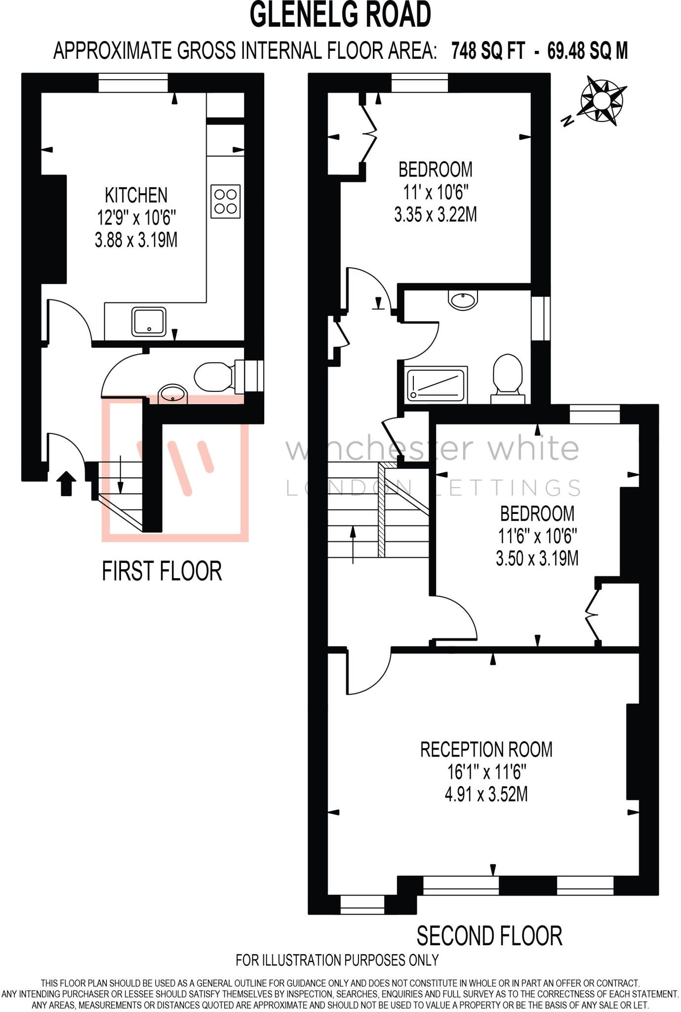A SUPERB two-bedroom SPLIT LEVEL flat PRESENTED IN IMMACULATE CONDITION THROUGHOUT. On the first floor, the property comprises a FULLY FITTED MODERN kitchen and a separate W.C and on the second floor, a BRIGHT reception area and two DOUBLE bedrooms with BUILT-IN STORAGE alongside one LARGE bathroom.