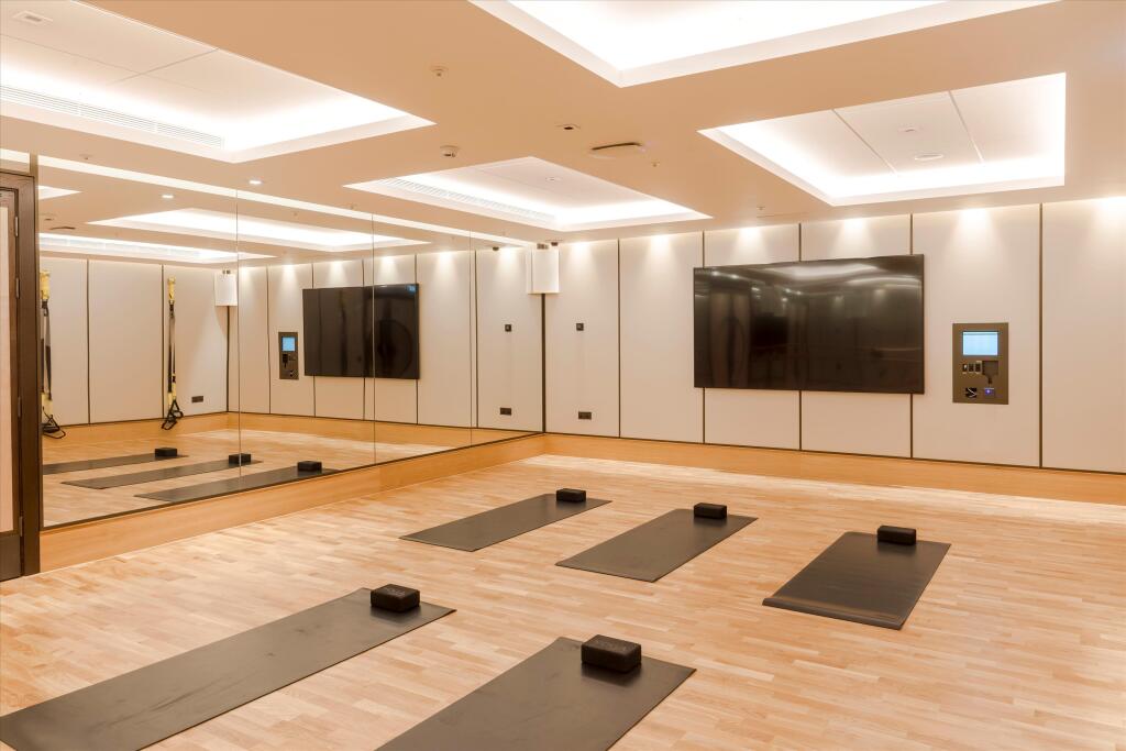 The property itself does not have a garden, but the building appears to offer communal amenities such as a gym, pool, sauna, and relaxation areas.