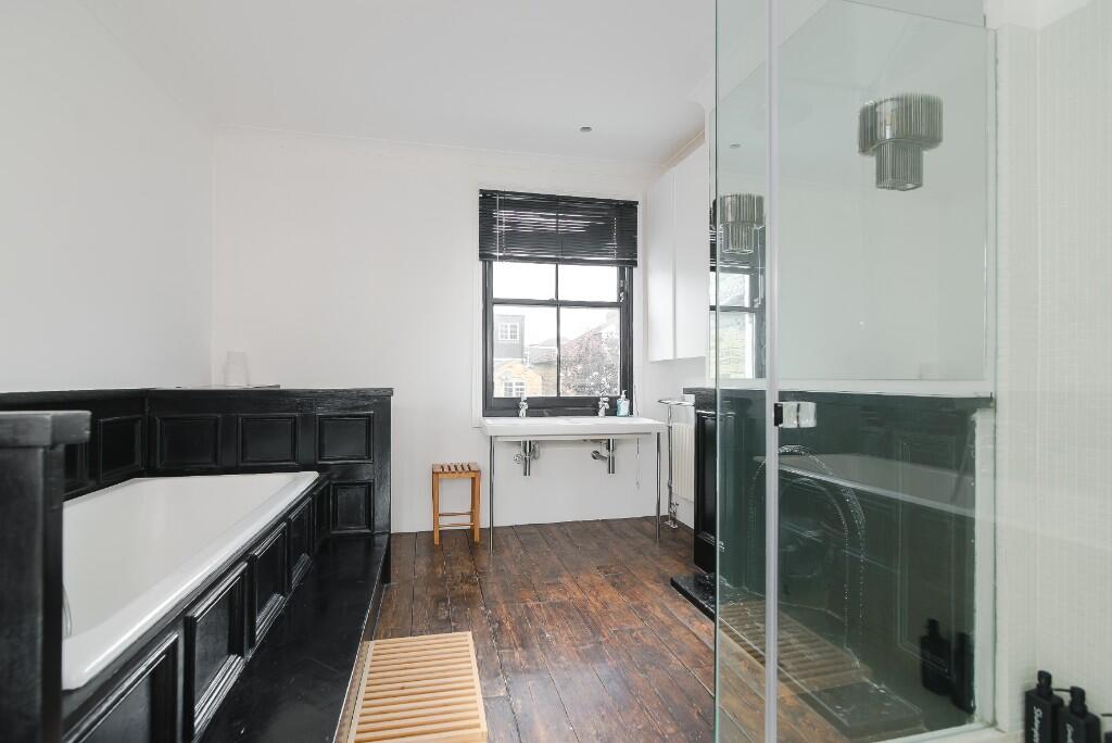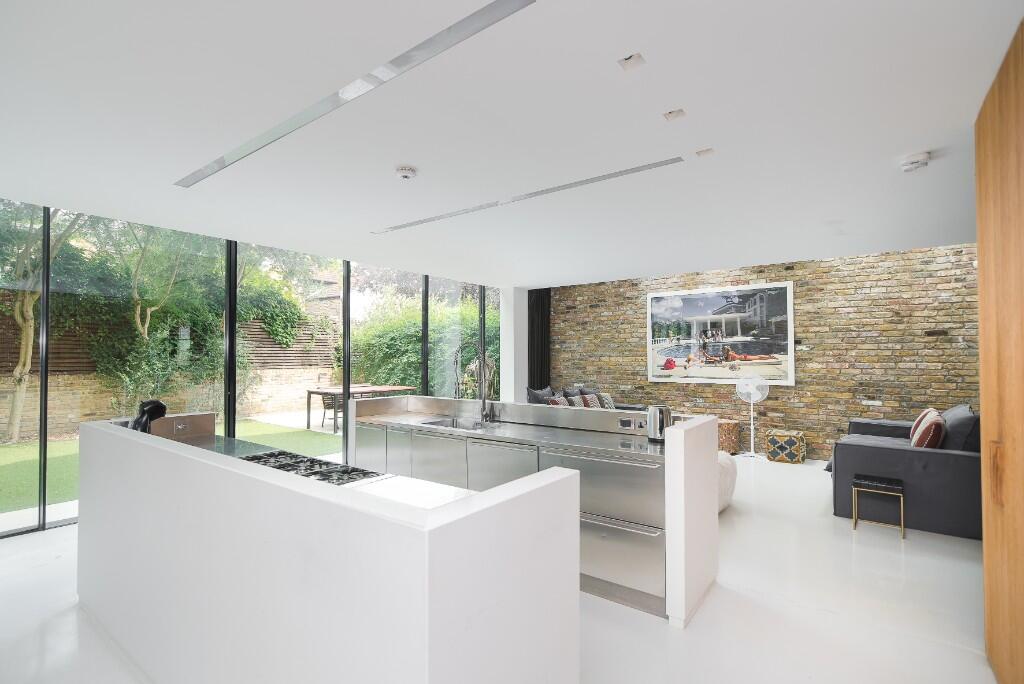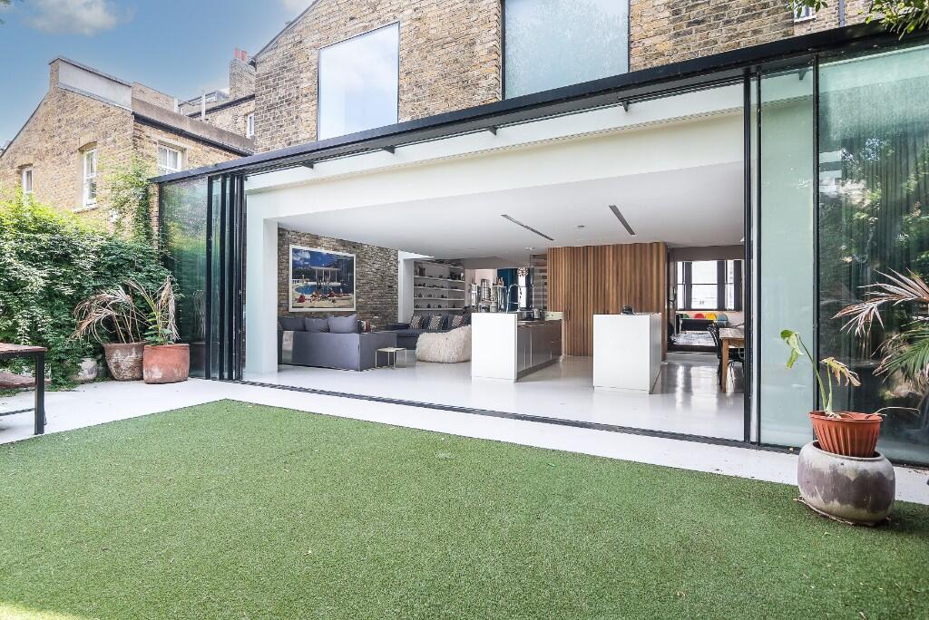 A gloriously spacious five bedroom, double fronted family home with extensive living space, including 32' wide kitchen / dining area, extensive reception space and wide private garden on a quiet residential street in the heart of Fulham.