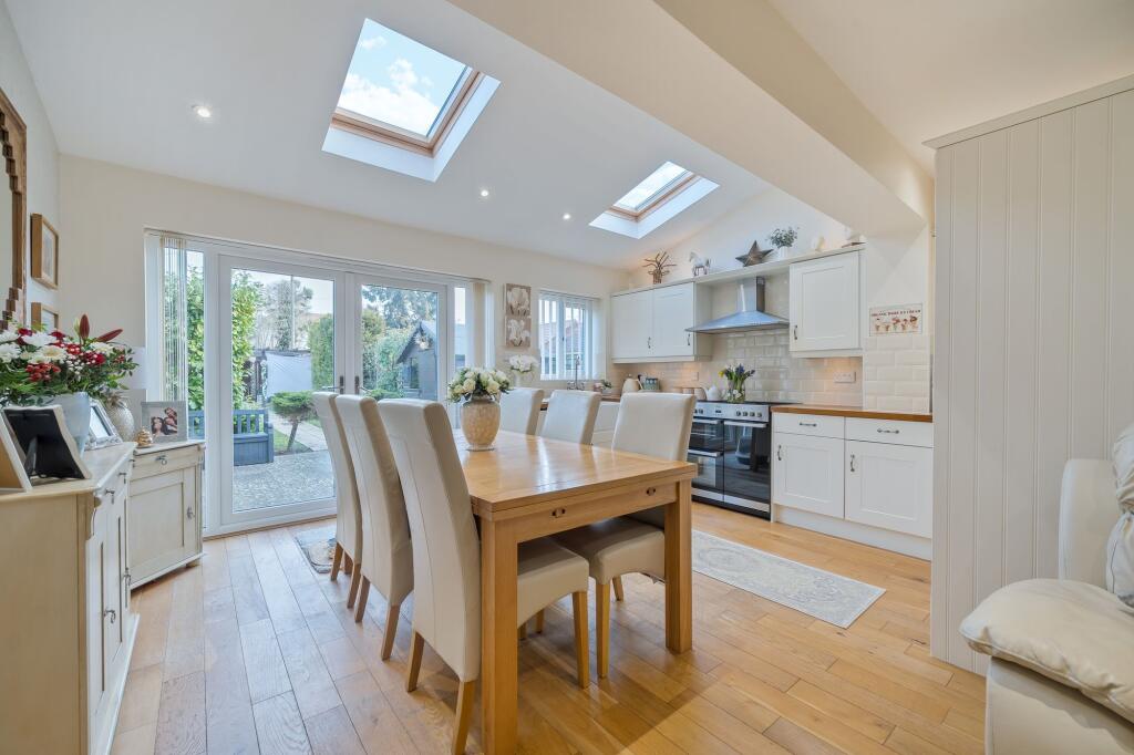 This beautifully extended three-bedroom home blends 1930s charm with modern living. Featuring a spacious open-plan kitchen, skylights, a gated driveway, and a 100ft garden with a stylish garden room.