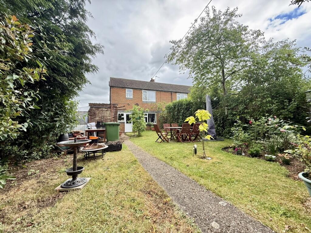 Located in a crescent of homes close to the Village Green, School, Pub and High Street this established end terrace home with large garden has an entrance hall, open plan sitting room and dining room, a kitchen, three bedrooms, a bathroom and WC. To the front is a garden and driveway with parking fo