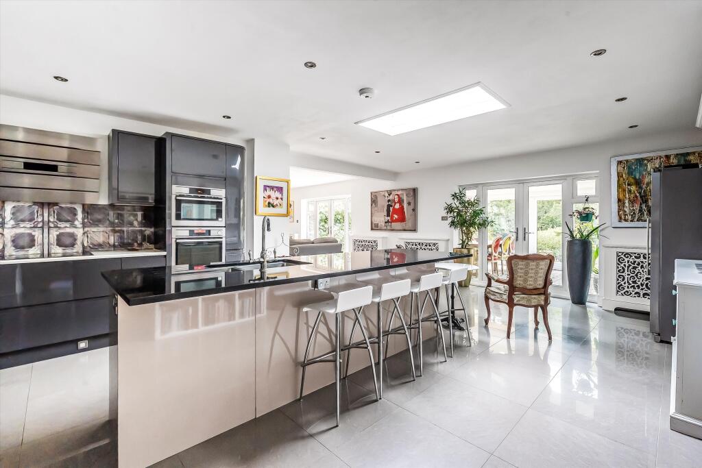 The property is a large family home situated in Shalford, a village near Guildford in Surrey. Shalford benefits from a train station providing links to Guildford and London, adding to its appeal. The proximity to several schools, including Gosden House School (rated Outstanding by Ofsted), further enhances its family-friendly appeal. The village also has local shops and a picturesque cricket green, suggesting a pleasant and convenient location. However, the lack of plot size information prevents a definitive assessment of the land available. The images reveal a property that appears to be in excellent condition. It has undergone recent renovations or extensions, evident in the modern kitchen and bathrooms. The interior is well-maintained and stylish, suggesting a high standard of finish throughout. The property also features a substantial garden with mature trees and landscaping, suggesting a tranquil and private setting. The list price of £1,575,000 is significantly higher than the average price of £708,044 for the area. However, this property is substantially larger (3,853.48 sqft) than the average (1,301 sqft) and offers more features. The average price per square foot in the area is £544, while this property’s price per square foot is approximately £408. Considering its size, condition, location, and apparent amenities (including the extensive garden), the price, while high, may be justifiable within the context of the local market. More information on comparable properties in the immediate vicinity would provide a more precise evaluation.
