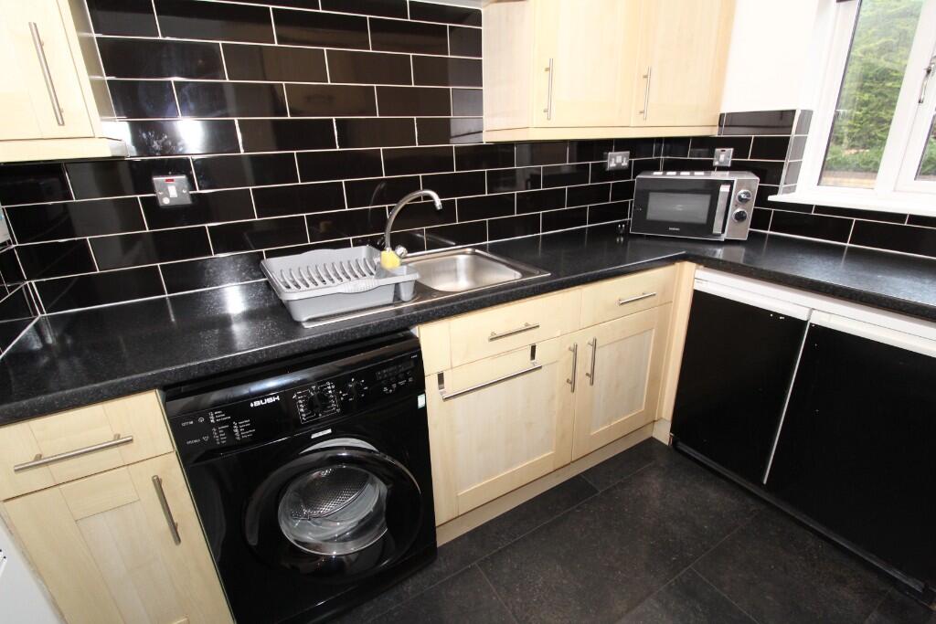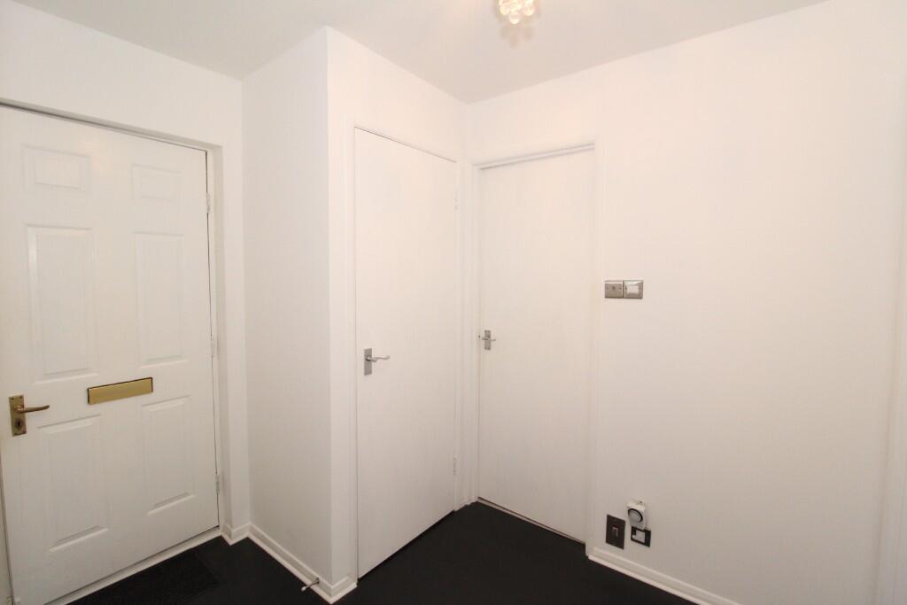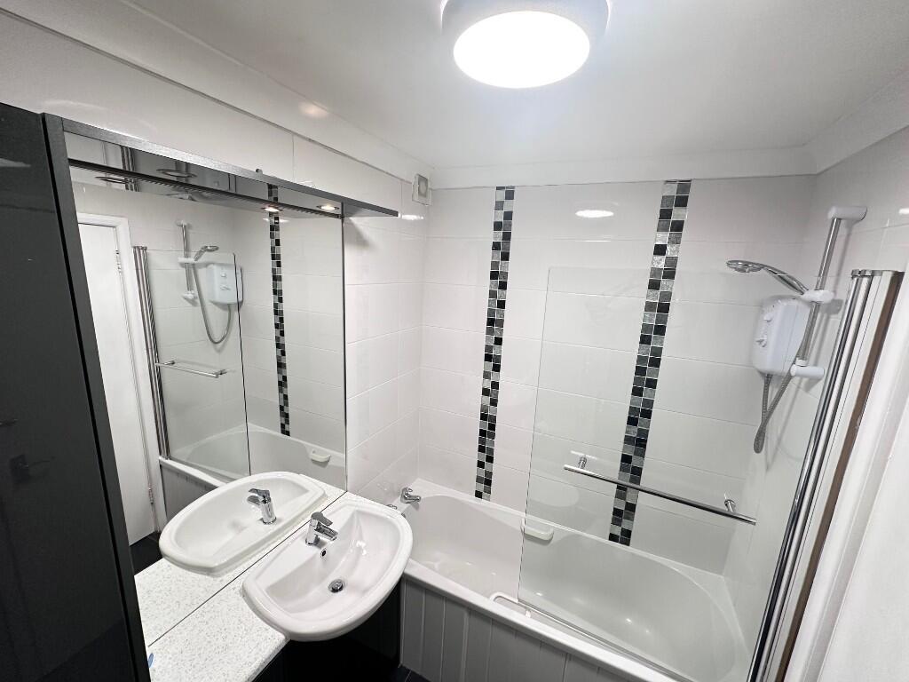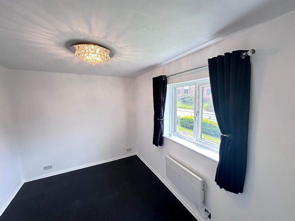 Ground floor, 1 bed Flat within popular suburb of Busby. Spacious lounge with large window, fitted kitchen with electric oven & hob, fridge/freezer & washing machine. One double bedroom with built-in mirror wardrobe. Bathroom with white suite & shower over bath. Electric heating & double glazing.