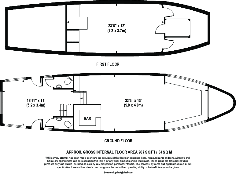 This vessel is 56 ft in length and has a beam of 14'3 with a total square footage of 907 sq.ft. over 2 floors. The hull is constructed from steel and was completed in 1975. Presently there is a Leyland diesel 97 6 cylinder engine in place, there are 2 toilet compartments.