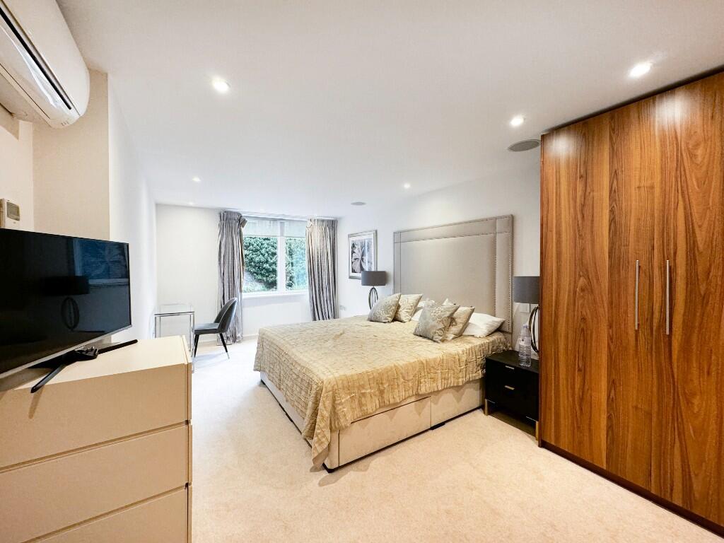 This newly refurbished ground floor and first floor apartment with A/C, comprises two bedrooms both with en-suite bathrooms and the master bedroom features a fantastic walk-in wardrobe. The apartment has a very large reception/dining area leading into a large kitchen with fully integrated appliances