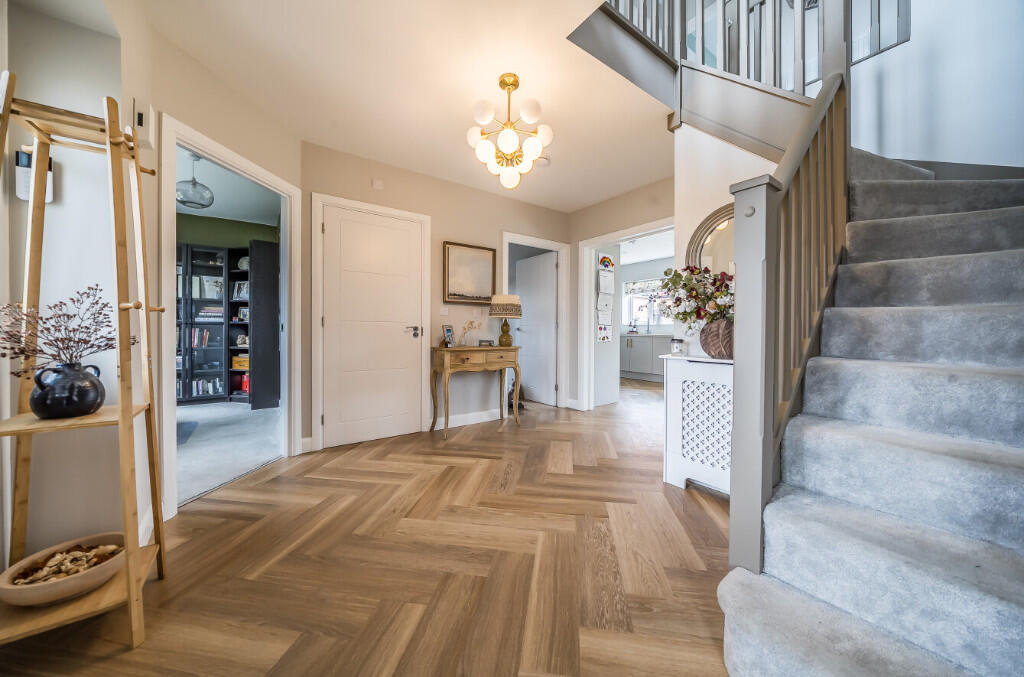 A fabulous detached house occupying a prime position on the prestigious Lancaster Park development, just ten minutes walk from Hungerford Town Centre.