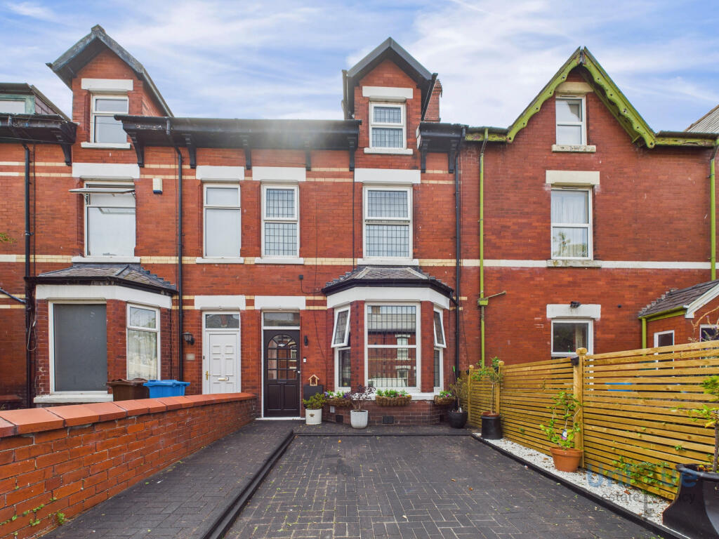 This is a four-bedroom terraced house on Holmefield Road, Lytham St. Annes. The property benefits from a modern kitchen and bathroom, and the interior appears to be well-maintained. It has a small rear garden/patio area. The location is residential, with good access to local amenities and schools. The asking price of £280,000 seems reasonable given the property’s features and the local market.