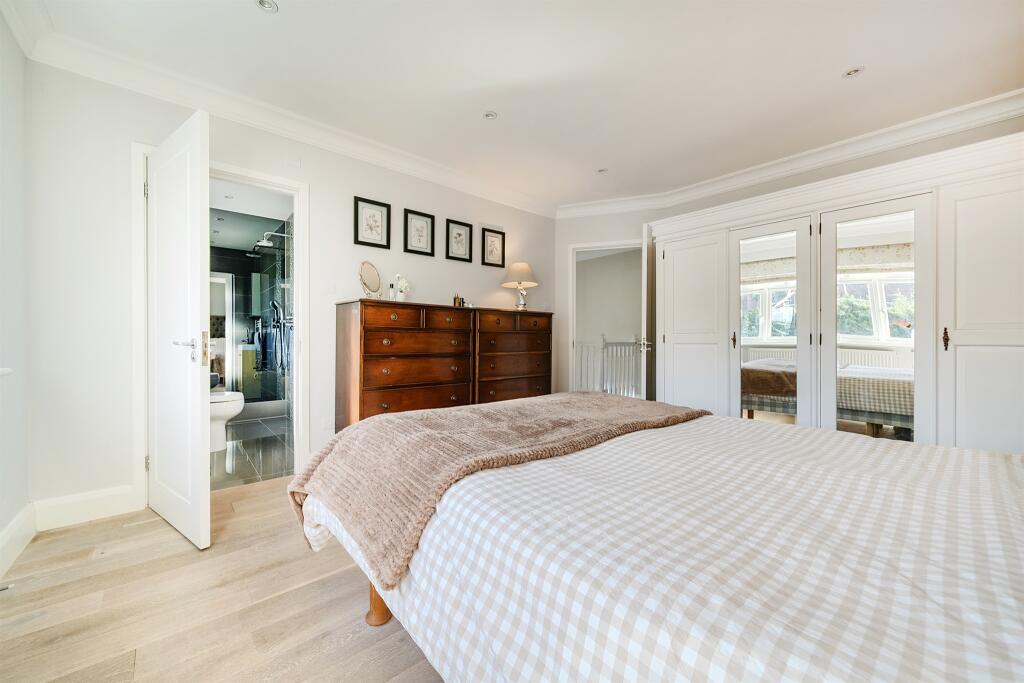 Spacious, extended four bedroom house in sought after cul-de-sac within walking distance of Enfield Chase Station, Enfield Town and good schools. Two bathrooms, two reception rooms, kitchen/breakfast room, superb rear garden, garage, downstairs WC, off-street parking for 2/3 cars, EV charger.