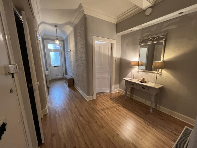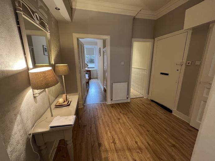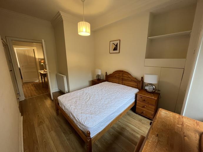 Not available to undergrad students. Lovely main door traditional flat comprising 2 double bedrooms, bright lounge, well fitted kitchen, large hall and bathroom with shower. Near shops, transport and road links. Gas Central Heating, offered fully furnished. Council tax band C.