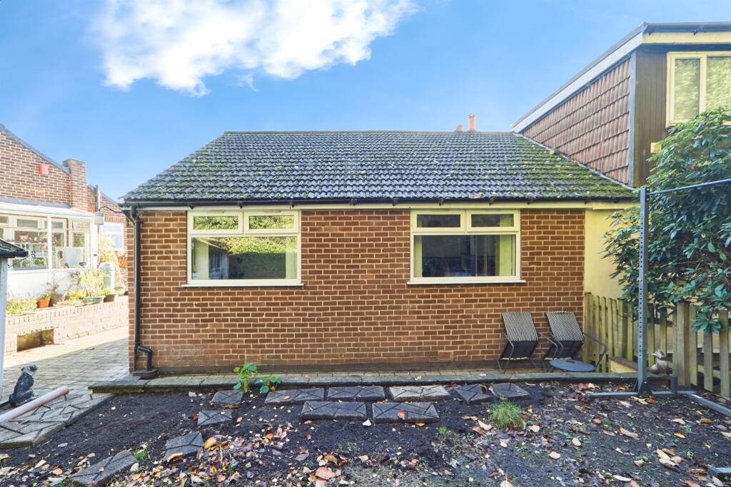 Spacious two-bed semi-detached bungalow with no onward chain. Features a bright lounge, fitted kitchen, two double bedrooms, and bathroom. Outside boasts a block-paved drive, detached garage, and generous rear garden with woodland views.