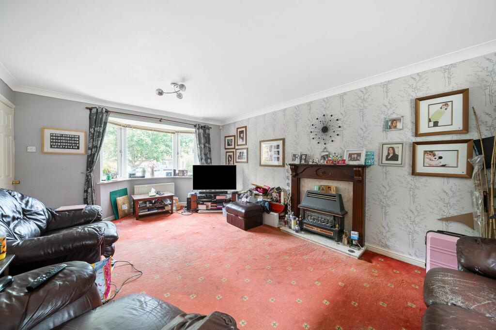 Detached 4-bed Persimmon home with wooded aspect. Ample parking, double garage, solar panels, gas central heating. Ground floor: living room, dining room, kitchen, study, WC. First floor: 4 double bedrooms, master en suite, family bathroom. Gardens to front, side, and rear.