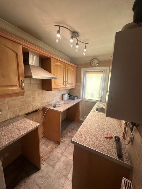 This property is a two-bedroom semi-detached house located on Brixham Road in Welling, Kent. The list price is £350,000, and the property has a plot size of 668.60 sqft and 757.04 sqft of internal space. The area has an average house price of £451,573 and an average price per sqft of £483.00. The property requires significant renovation work, as evidenced by the photos. The garden is small and mainly consists of gravel. The location is convenient with nearby transportation links and schools, although the specific quality of the schools and transport links would need further investigation. Given the condition of the property, the price may seem reasonable compared to other properties in the area that require less work. However, the necessary renovations will add significant costs to the purchase price.