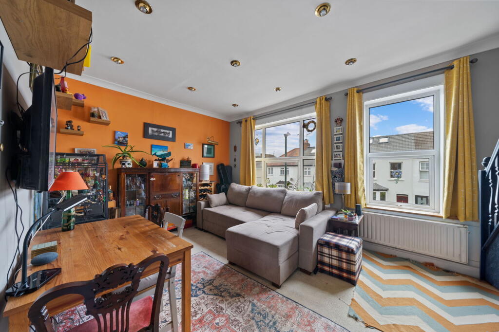 REF JK0700.We are pleased to offer this split level maisonette with it's own front door and direct access to private rear laid to lawn garden with storage sheds. Stairs to the first floor accommodation lead onto a spacious lounge reception area with two large pict...