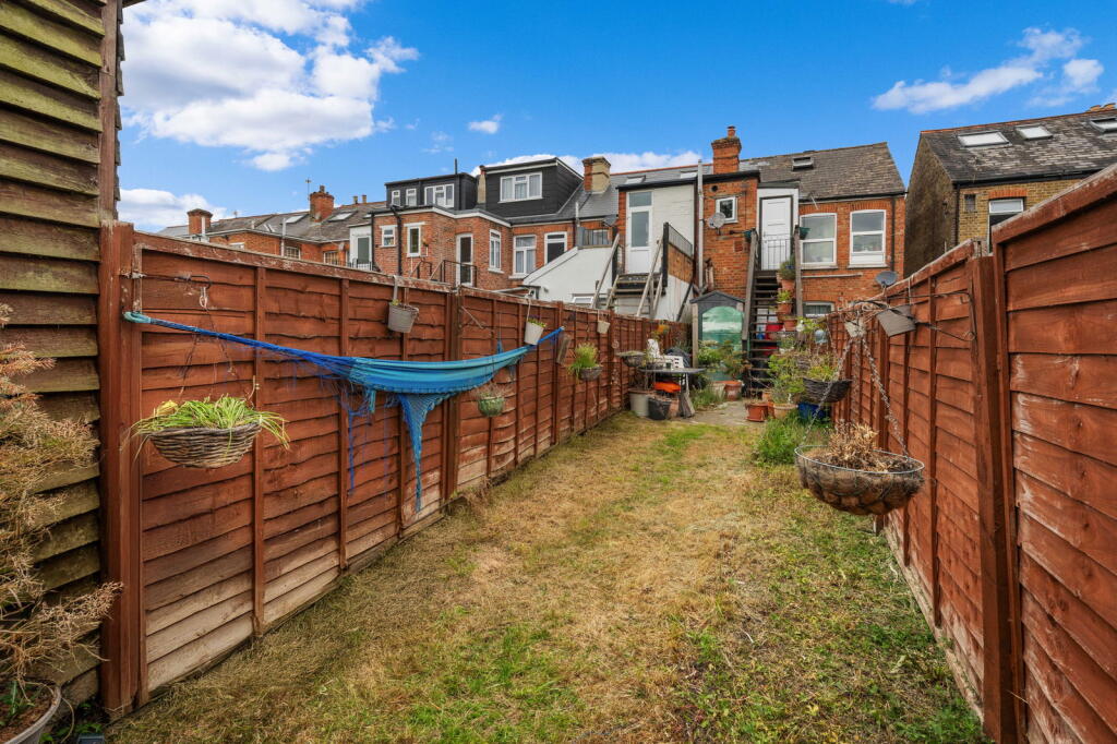The property itself is a two-bedroom maisonette with one bathroom. The images show a property that is habitable but could benefit from some modernisation. While not in disrepair, some updates to the decor and fixtures would enhance its overall appeal and potentially increase its value. The kitchen and bathroom appear functional but dated. The garden is a notable feature, offering some outdoor space, although it appears to require some maintenance.
