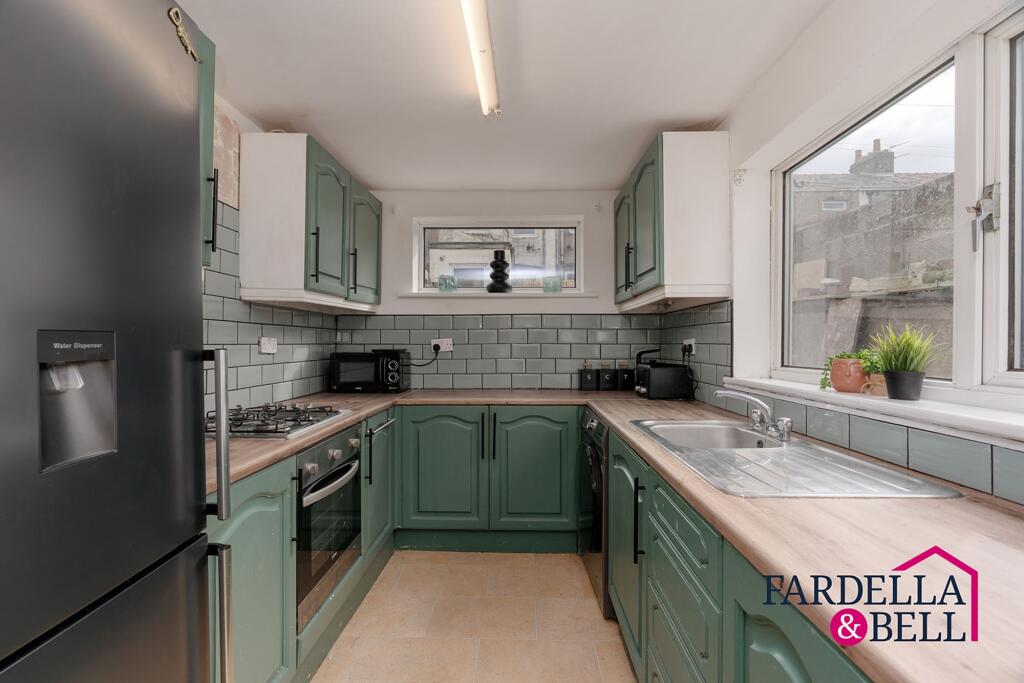 2-bed terraced house with modern kitchen, 2 reception rooms, and electric fireplace. On-street parking, convenient location near M65, shops, and schools. Private rear yard with low-maintenance yard.