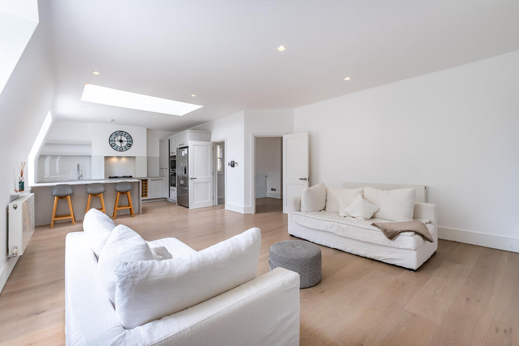 Situated in the heart of South Hampstead on one of the area’s most desirable tree-lined streets, this impressively large four-bedroom duplex apartment offers over 1,950 sq ft of beautifully presented living space, thoughtfully arranged over the upper floors of a well-maintained period conversion.