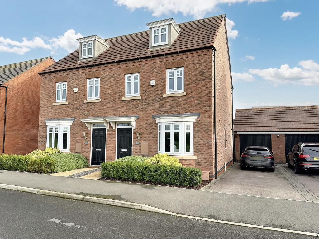 An immaculately presented and spacious David Wilson built three double bedroomed, three storey home, occupying a favourable position on the edge of the development overlooking parkland. The property also benefits from a driveway and a garage to the side along with an attractive, landscaped rear g...
