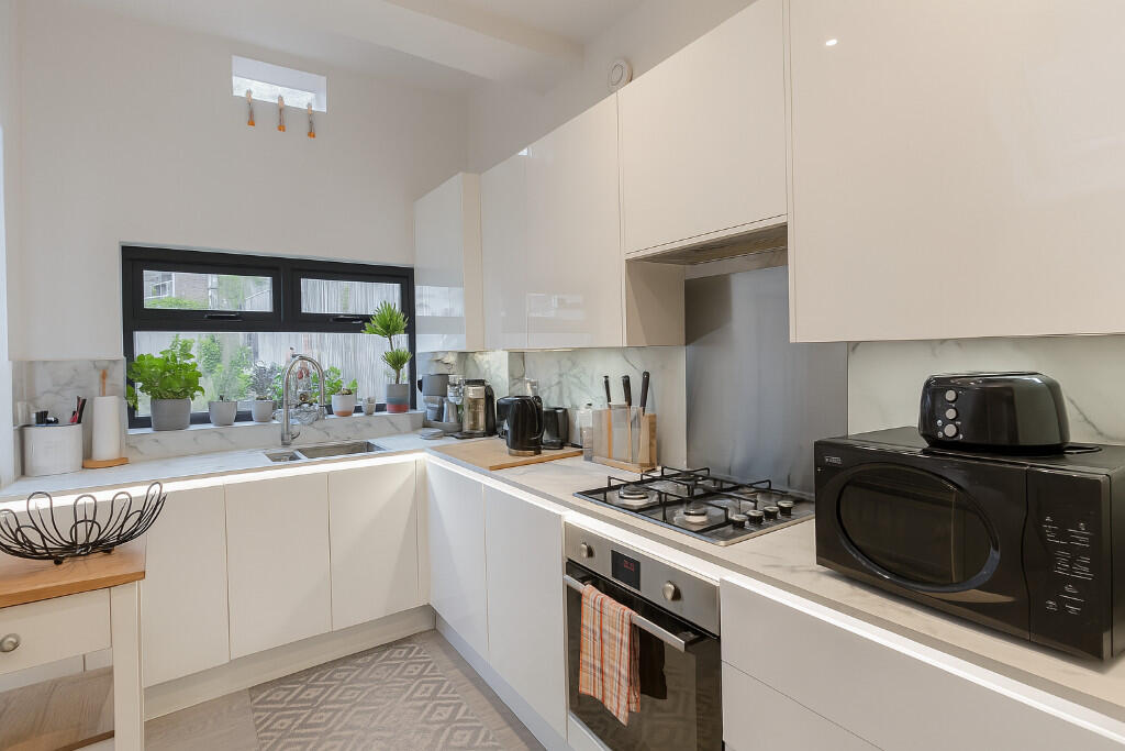 A stylish and modern three-bedroom, two-bathroom house in Hornsey, N8. Featuring a spacious open-plan kitchen/reception, private garden, and contemporary interiors throughout. Available unfurnished from 18th September