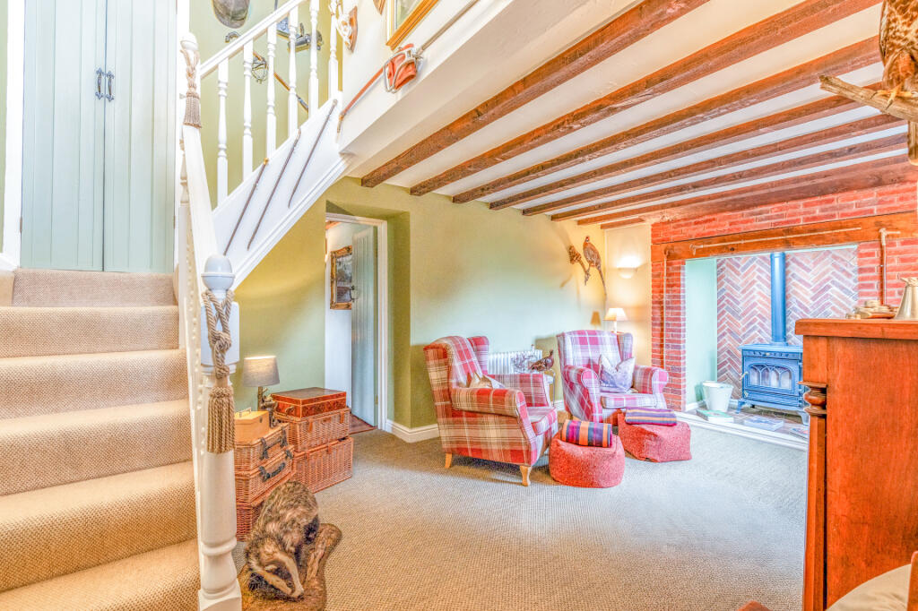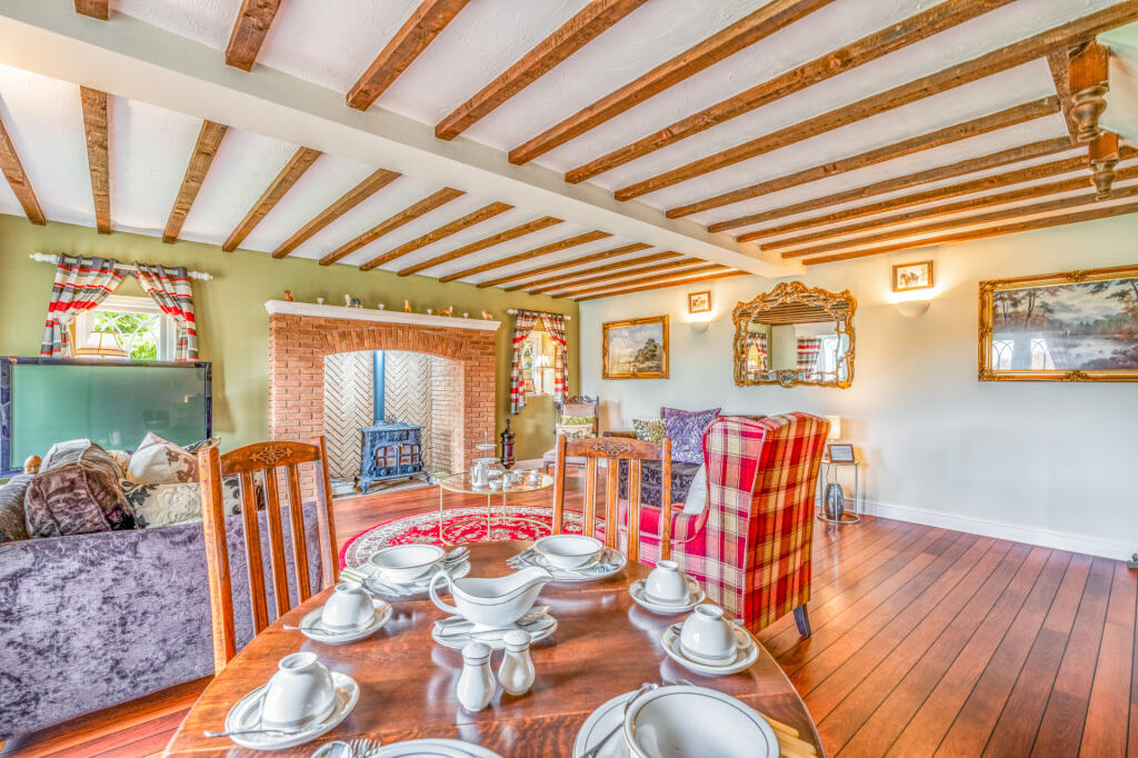 April Cottage is a charming detached property located in the scenic countryside near Cleobury Mortimer, Shropshire. The property features three bedrooms, two bathrooms, and a generous living space of 1,929 sqft. The cottage is set on a substantial plot of approximately 1.4 acres, offering a tranquil and private setting. The interior of the property showcases a blend of traditional and modern elements, with exposed beams, updated kitchen and bathrooms, and comfortable living spaces. The exterior is equally appealing, with well-maintained grounds, a gravel driveway, and a patio area. The property is conveniently located within a reasonable distance of local amenities and schools, making it an attractive option for families and those seeking a rural retreat.