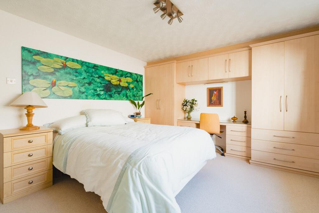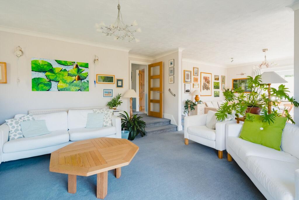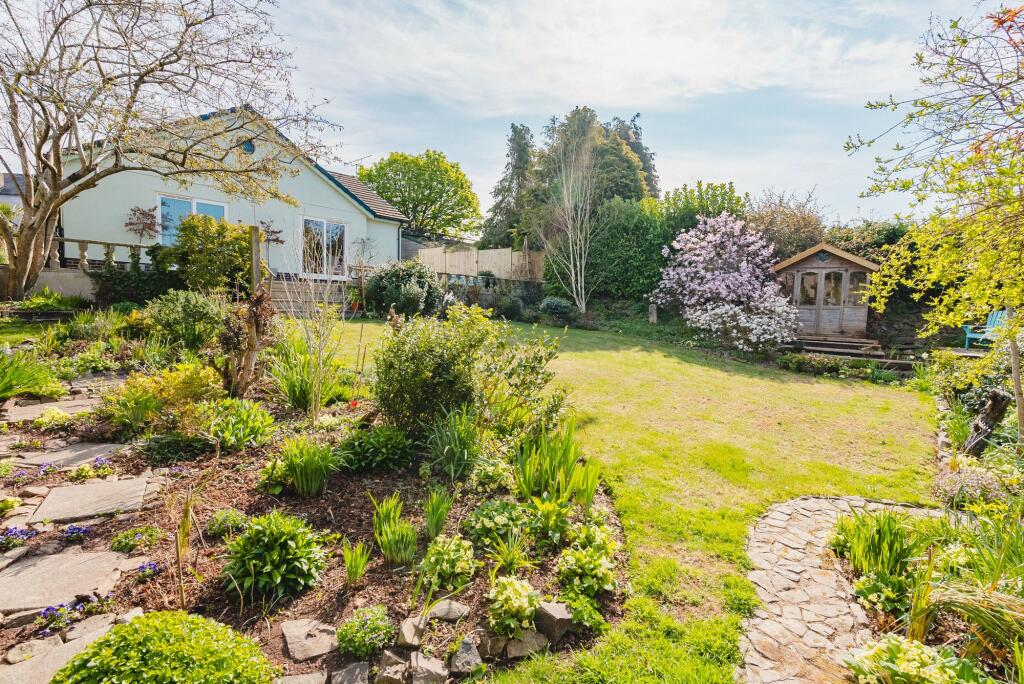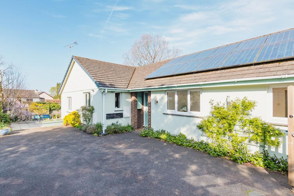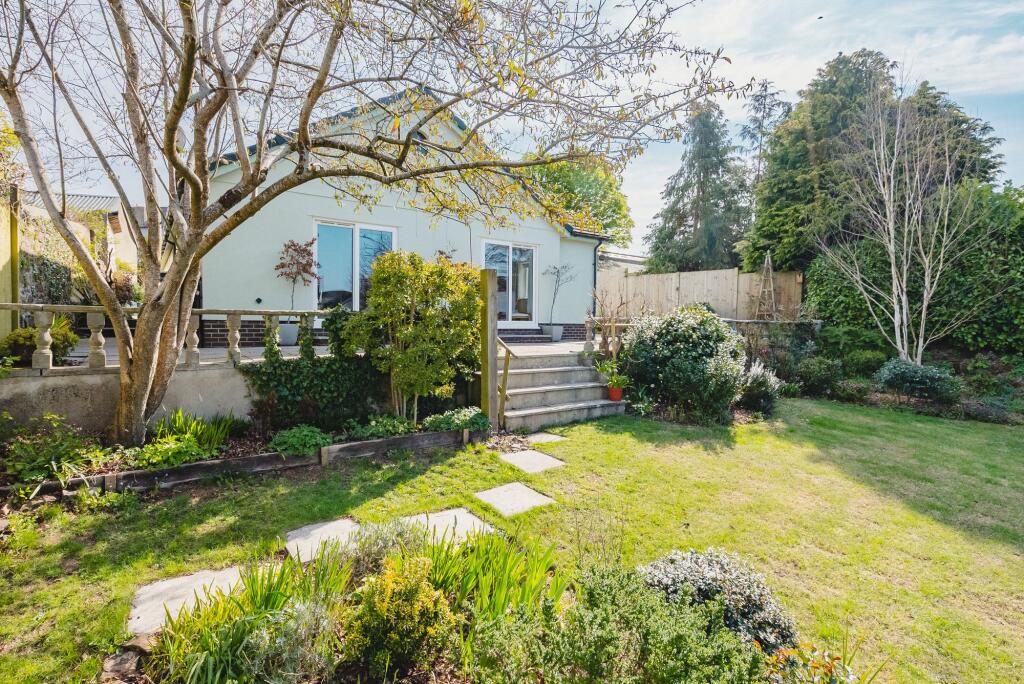 Wonderful, light and modern detached bungalow with 4 bedrooms with a large south facing walled garden, ample parking and large garage/workshop, all tucked away in a private yet central position.
