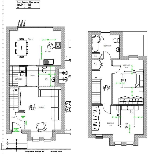 FULL PLANNING PERMISSION GRANTED FOR SEMI DETACHED TWO BEDROOM HOUSE