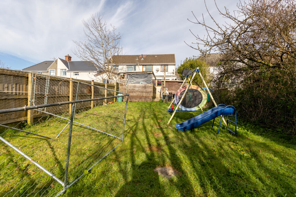 The property has a garden, although its size and condition are not entirely clear from the images. There is a children’s play area present, which may be a positive attribute for families.