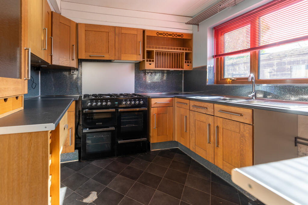 Based on the images provided, the property appears to be in need of some modernisation and updating. The interior shows dated decor and some areas require attention. The exterior is also somewhat tired, although there is a garden present.