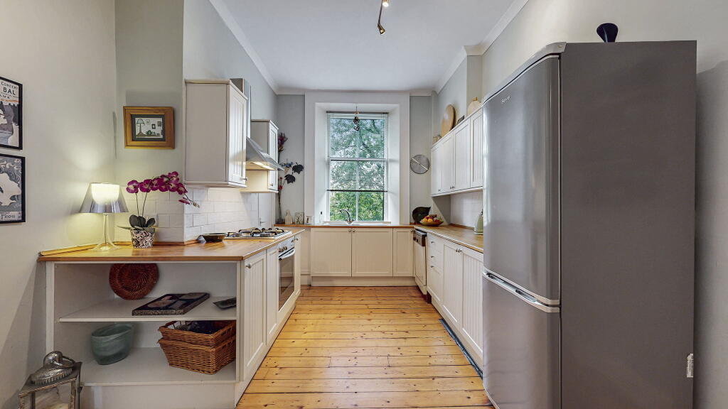 This is a traditional tenement flat in the Thornwood area of Glasgow. The property has one bedroom and one bathroom. It benefits from a modern kitchen. While the property is in generally good order, some aspects could benefit from modernisation. The flat has access to a communal garden. The property is well-located for access to local amenities and transportation links. The asking price appears to represent fair value for money.