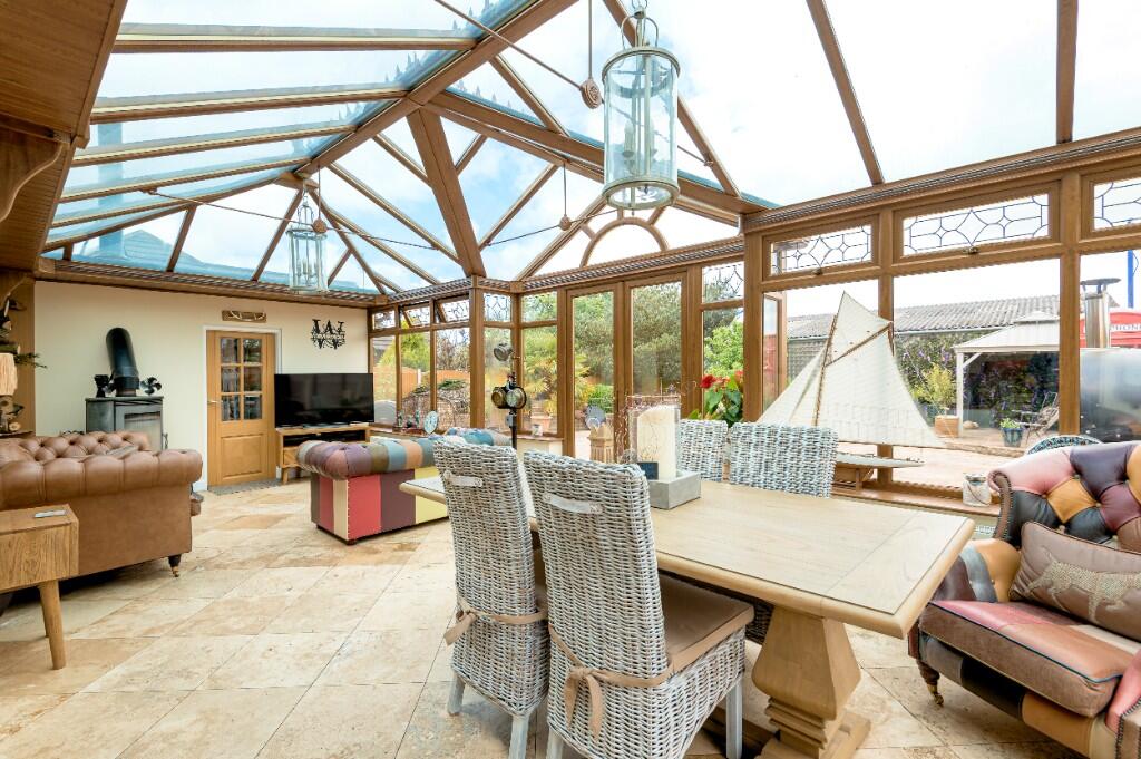 Well-finished 4 bedroomed dormer bungalow, steel portal framed building, large hardstanding area, and amenity grassland For Sale.