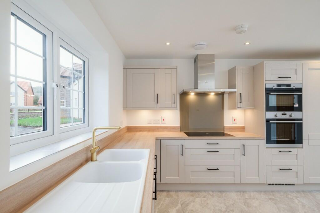 The property is located in Churchill, North Somerset, a village in the South West of England. The area benefits from the nearby Churchill Academy & Sixth Form, rated as ‘Outstanding’ by Ofsted, and Churchill Church of England Primary School, rated ‘Good’. Yatton train station is approximately 7.19km away, providing a rail link. While the exact plot size and square footage are unavailable, the images show a newly built, modern four-bedroom detached house with a south-facing garden. The property appears to be in excellent condition, with modern fixtures and fittings throughout. The kitchen is well-equipped, and the bathrooms are contemporary. Considering the list price of £630,000, and comparing it to the average house price in the area (£740,833) and the average price per square foot (£511), the property seems reasonably priced, especially considering its apparent new build status and modern features. However, without the square footage of the property, a precise price per square foot comparison cannot be made. Nearby comparable properties on Dinghurst Road range from £460,000 to £802,500, further suggesting that the list price is within the expected range for this location and type of property. The presence of a south-facing garden is a desirable feature, likely contributing to the property’s value.
