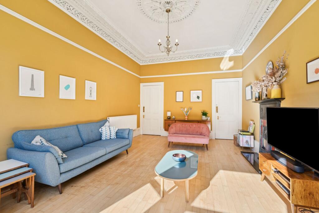 This beautifully presented three-bedroom flat is set on the ground floor of an attractive blonde sandstone tenement, perfectly located in the heart of Pollokshields with leafy green views to the rear and excellent local amenities on your doorstep.Generously proportioned and full of period charm, ...
