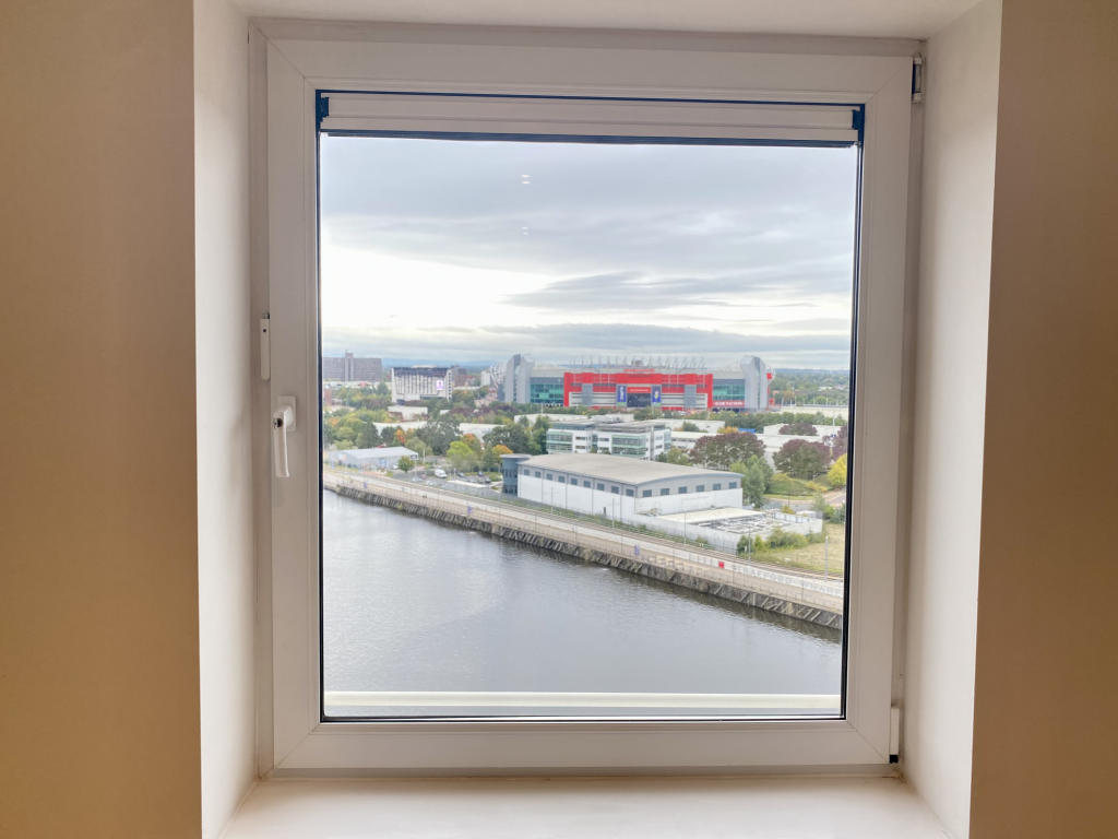 CASH BUYERS ONLY, NO EWS1 CERT A RARE AND UNIQUE OPPORTUNITY TO PURCHASE A STUNNING ONE BEDROOM APARTMENT FACING SALFORD QUAYS WATERFRONT WITH VIEWS TO MANCHESTER UNITED. UNDER GROUND PARKING, 8th FLOOR, LEASEHOLD. *WATCH THE WALK THOUGH VIDEO*
