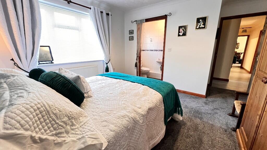 SPACIOUS MODERN THREE BEDROOMED DETACHED BUNGALOW AT THE END OF A CUL-DE SAC IN THIS HIGHLY SOUGHT AFTER RESIDENTIAL AREA IN THIS HIGHLY POPULAR VILLAGE WITH ITS OWN SCHOOL, PUB, POST OFFICE AND SHOP * 22FT LOUNGE * MASTER BEDROOM WITH EN-SUITE SHOWER /W.C. * USEFUL UTILITY * ENCLOSED GARDENS