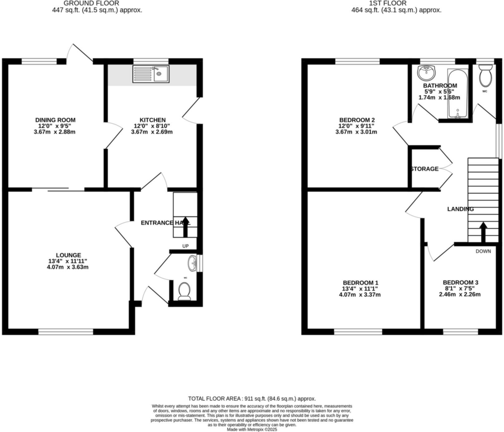 The property itself is a 3-bedroom, 1-bathroom semi-detached house with a total area of 910.63 sqft. Based on the provided images, the property appears to be in need of modernisation and updating. The décor is dated, and some aspects may require repair or replacement. The kitchen and bathroom appear particularly tired. The property includes a small garden to the rear.
