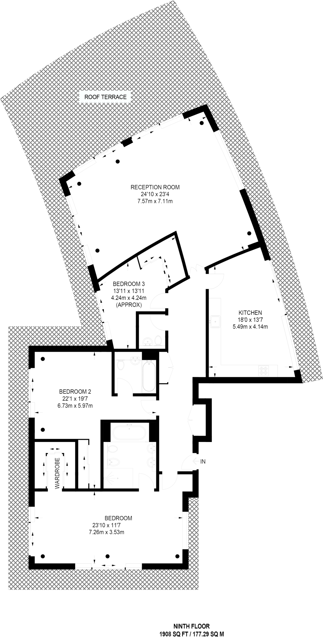 This property is a three-bedroom, three-bathroom penthouse apartment located in Canary Wharf, a prime location in London. The apartment is spacious (1908 sqft) and benefits from floor-to-ceiling windows offering stunning views. The images show a well-maintained property that appears to be in good condition, with modern fixtures and fittings. The kitchen is functional and the bathrooms are clean and modern. The property includes a large private roof terrace, which is a significant advantage, adding to its desirability. While plot size is not specified, the roof terrace provides significant outdoor space. Canary Wharf is known for its excellent transport links, with easy access to the Jubilee Line and DLR, providing convenient commutes across London. The area also boasts a variety of amenities, including shops, restaurants, and entertainment venues. Given the location, size, and condition of the property, and comparing it to similar properties in the area, the list price of £1,350,000 seems reasonable, although slightly above the average price per square foot for the area. However, the penthouse status and private terrace justify this premium.